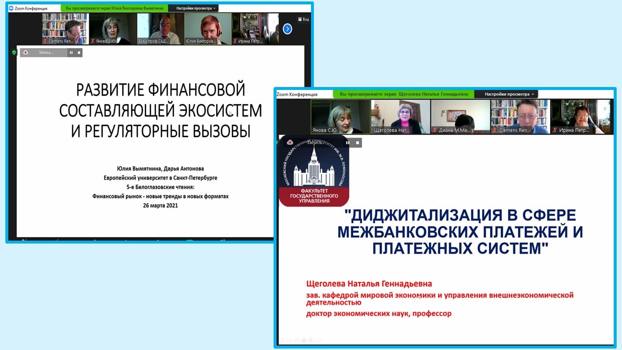 26 марта кафедрой банков, финансовых рынков и страхования под руководством заведующего кафедрой, доктора экономических наук, профессора Яновой С.Ю. была организована свободная научно-практическая дискуссия «5-е Белоглазовские чтения: Финансовый рынок - новые тренды в новых форматах», посвященная памяти Заслуженного деятеля науки РФ, доктора экономических наук, профессора Белоглазовой Г.Н. В рамках конференции многие годы проходят «Белоглазовские чтения», где ученики, аспиранты, преподаватели кафедры, отечественные и зарубежные коллеги, которые долгие годы работали с Галиной Николаевной, вспоминают о прекрасном ученом.
